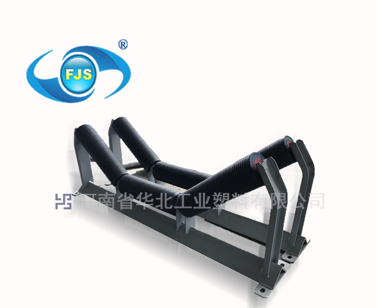 非金属托辊是缠绕式线性分子结构,尤其是超高分子量聚乙烯托辊的分子链特别长,因此它的抗冲击强度极高。可承受反复冲击、震动,在长期的运转中不易断裂。金属托辊的抗冲击性好,但不能反复冲击震动,那样金属托辊易腐蚀断裂。陶瓷托辊的抗冲击性差,易断裂。非金属托辊的摩擦系数小(只有0.1~0.15),自润滑性高,不会对皮带造成磨损,使皮带寿命延长了1~2倍。因非金属托辊自身耐磨损、自润滑性高,摩擦系数小,有超强的抗粘附能力,所以托辊表面不会粘附和堆积物料,提高主机的运转平稳性、减少物料的抖动下滑,并明显降低整机的噪音,可以使带式输送机实现长距离、大运量、高速度的运转工作。达到运转助力小,噪音低,耐磨损,不沾物料,运转平稳,托辊使用寿命长,是传统托辊的2~3倍。也可消除或者减少各种事故隐患,提高安全性能。金属托辊易生锈,摩擦系数大(是0.68~0.8.)易粘附物料,所以运转助力大,噪音高,易磨损,运转平稳性低,使用寿命短。陶瓷托辊不易粘附物料,摩擦系数大,抗冲击性差,所以易磨损,噪音高,运转平稳性低,使用寿命短。