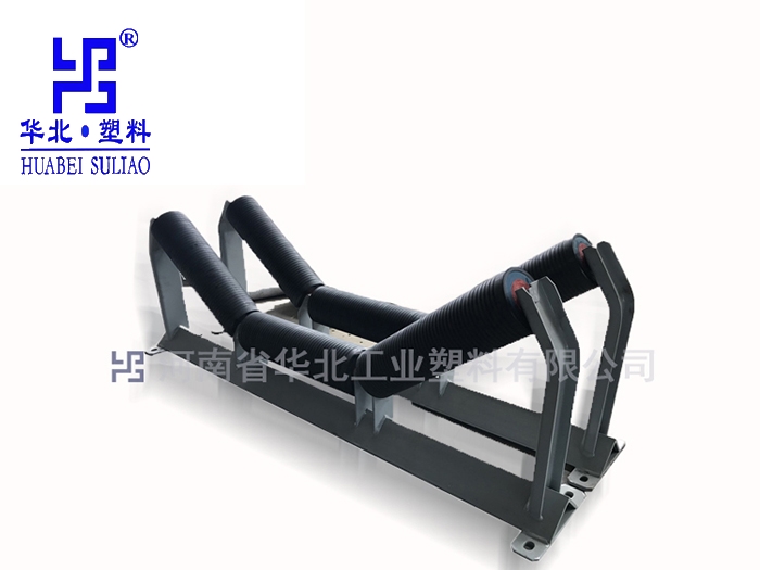 槽型输送机托辊主要作用是在物料的作用下,输送带及各托辊弹性下压,克服了硬性冲击碰撞,有效保护了输送带与托辊,并且延长了使用寿命,降低了生产成本。用于皮带式输送机受料处减缓落料对输送带系列的冲击.